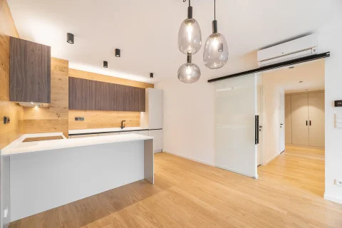 s důrazem na nadčasovou eleganci a funkcionalitu. Kuchyňské linky i vestavěné skříně jsou vyrobené na míru, na podlahách najdete kvalitní dřevěné parkety nebo vinyl. Dřevěná okna s trojsklem zajišťují výbornou izolaci, bezfalcové dveře dodávají bytům moderní charakter. Každá jednotka je vybavena klimatizací. Prostě kvalitní bydlení, které můžete vlastnit okamžitě.