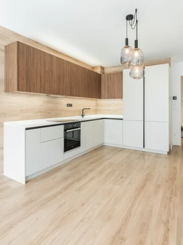 Interiéry bytů splňují nejvyšší standardy dnešní doby. Klimatizace ve všech obytných místnostech Vám zajistí příjemné prostředí i v horkých letních dnech, moderní kuchyně na míru s kvalitními spotřebiči nabízí komfort pro každodenní život. Vestavěné skříně a velkorysé komory promění každý kout v praktický úložný prostor – konečně místo na vše, co k životu potřebujete. V menších bytech 1+kk a 2+kk oceníte i pečlivě vybraný solitérní nábytek, který dotváří domácí atmosféru.
